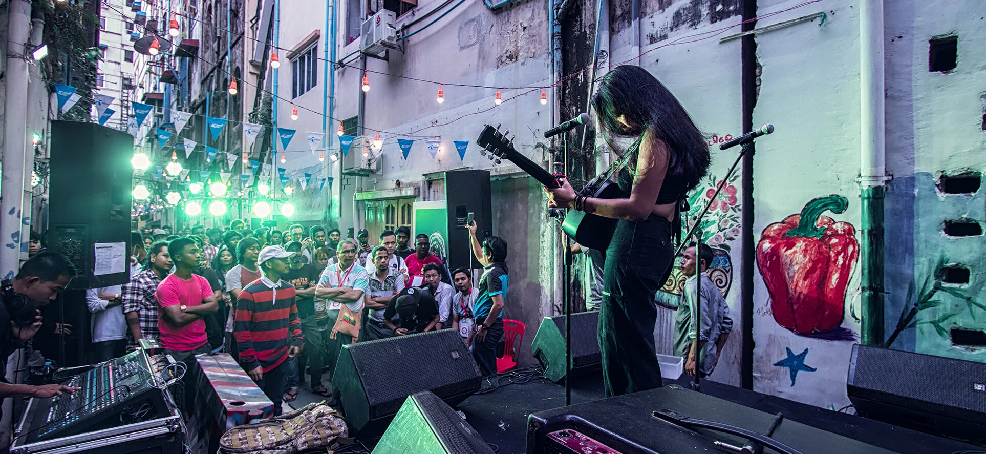 Khit Sense and Pyinsa Rasa teams worked hand in hand with the alley community and authorities, who played a crucial role in cleaning and freshening up the alley and ensuring the security of the opening event.